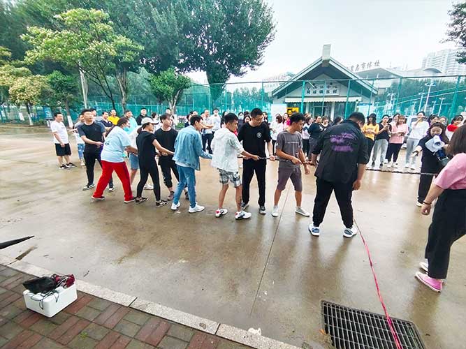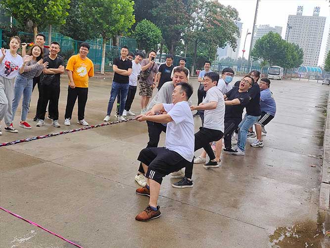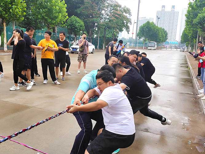 哨聲響起,比賽一觸即發!大家團結一致努力拼搏著!有的緊握麻繩,咬牙使勁;有的扎穩腳步,不可撼動;有的身體向下傾斜,鉚勁拉繩……大家的勁往一處兒使,心往一處兒聚。全神貫注的眼神、奮力拉扯的身影,無不彰顯了員工們的意志。